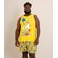 Pijama masculina confeccionado em malha de algodão. A regata tem caimento solto, gola careca e ombros médios. Possui estampa frontal do desenho Os Simpsons. A bermuda tem elástico embutido no cós.