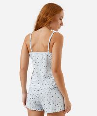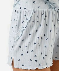 pijama short doll canelado floral azul