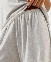 Pijama short doll feminino confeccionado em malha de viscose com detalhes em renda. Composto por regata com modelagem reta, caimento solto ao corpo, decote v, botões decorativos e alças finas. E short com modelagem reta, caimento solto e cós com elástico embutido.