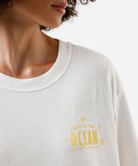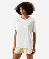 • Camiseta de manga curta com gola redonda e estampa temática de concha, confeccionada em malha 100% algodão.