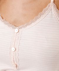 Pijama short doll feminino confeccionado em malha de viscose com estampa listrada e detalhes em renda. Composto por regata com modelagem reta, caimento solto ao corpo, decote v, botões decorativos e alças finas. E short com modelagem reta, caimento solto e cós com elástico embutido.