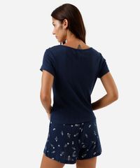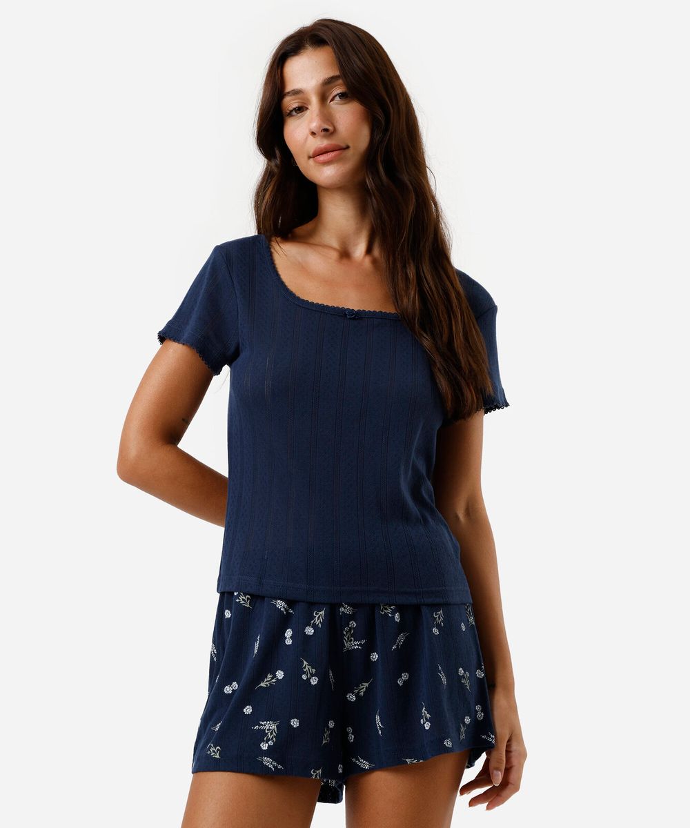pijama short doll feminino floral azul