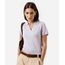 Polo feminina confeccionada em tricot leve de viscose e poliamida. A peça tem a modelagem e construção reta e o caimento é confortavelmente solto ao corpo. O modelo tem gola esporte aplicada, decote v e mangas curtas. Detalhe de acabamento canelado nos punhos, gola e na barra.