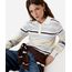 polo básica feminina de tricot manga longa listrada off white
