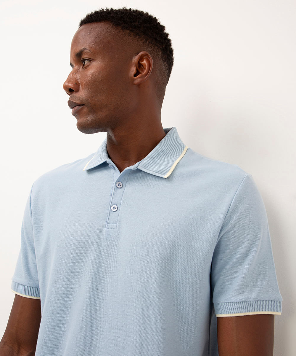 Esta camisa polo masculina se destaca por seus detalhes clássicos e modernos: