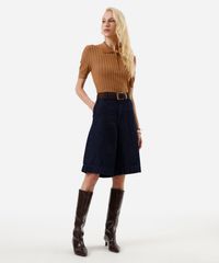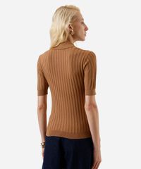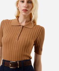 polo feminina de tricot canelada marrom