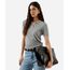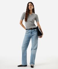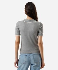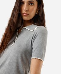 polo feminina de tricot manga curta cinza