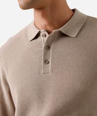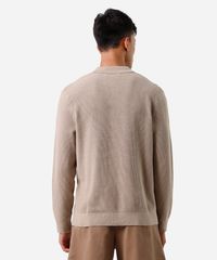 polo masculina de tricot manga longa texturizado bege