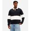 Polo masculina confeccionada em moletom sem felpa com recortes em tom contrastante. A peça tem a modelagem e construção reta e o caimento é confortavelmente solto ao corpo. O modelo tem gola esporte aplicada, fechamento frontal por botões em vista interrompida e mangas longas com punhos canelados. Detalhe de acabamento pespontado na barra.