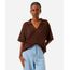 Polo feminina confeccionada em tricot com tramas espaçadas. A peça tem modelagem oversized, com construção reta e o caimento é amplo e confortavelmente solto ao corpo. O modelo tem gola esporte aplicada, decote V e mangas curtas com cavas deslocadas.