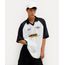 • Gola esporte e mangas curtas no estilo raglan, que reforçam a estética esportiva da peça.