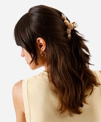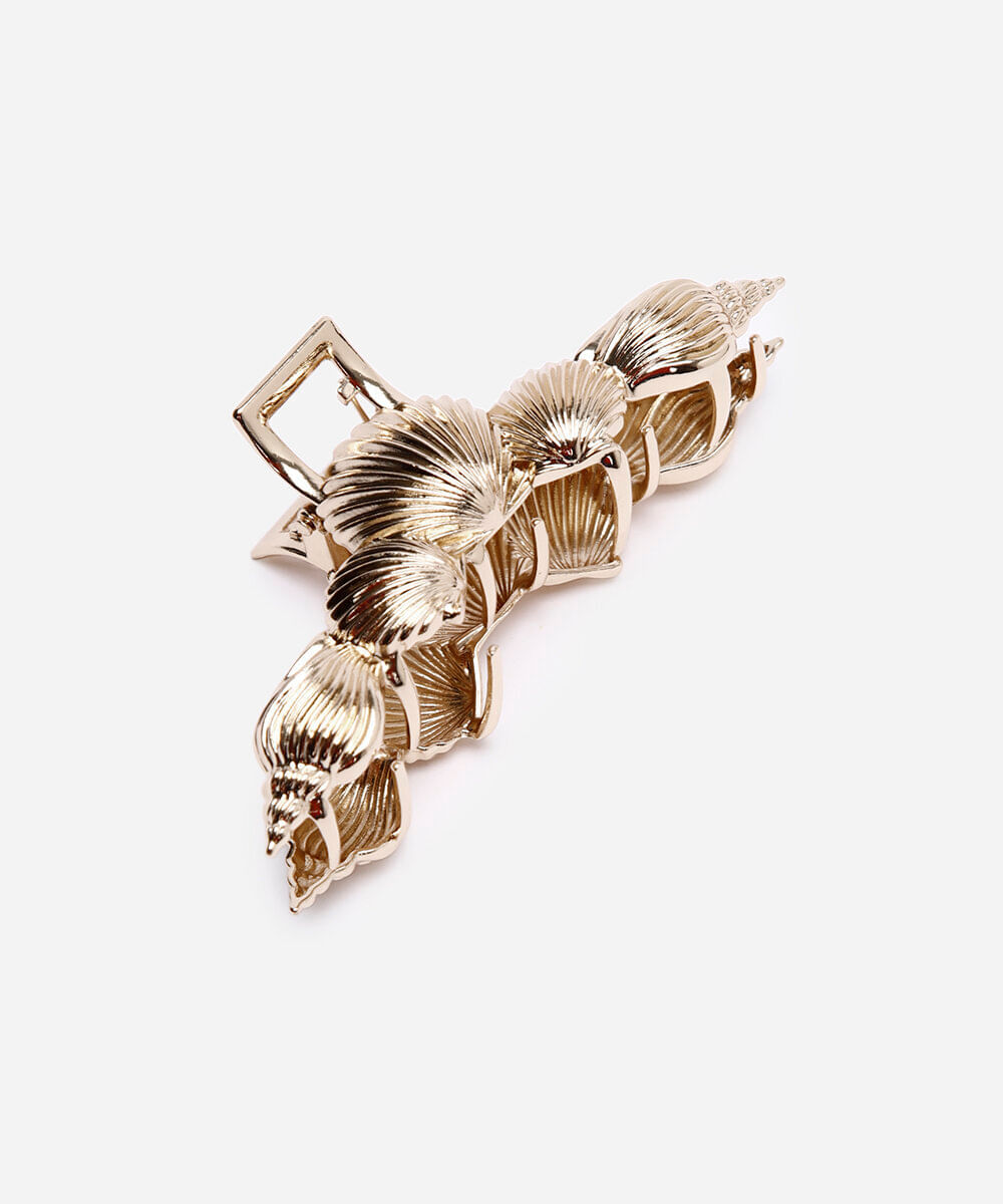 Presilha para cabelo desenvolvida em metal com o banho na cor dourada e formato de diferentes conchas.