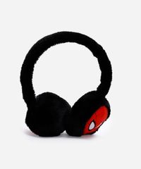 Protetor de orelhas infantil desenvolvido em pelúcia. O modelo possui arco ajustável e laterais acolchoadas com enchimento com bordado do personagem "Homem Aranha".