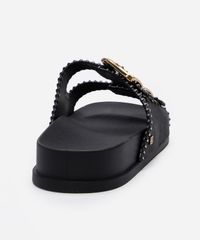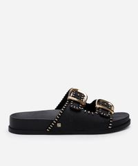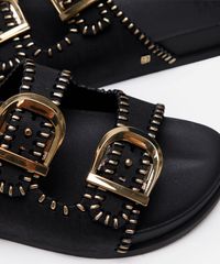 Esta sandália rasteira se destaca por seus detalhes que aliam funcionalidade e moda:
