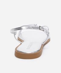 Rasteirinha feminina desenvolvida em material sintético resistente. O modelo tem bico quadrado e cabedal com tiras finas cruzadas e fivela lateral com níveis de ajuste. Possui solado com leve enchimento e inscrição de marca e sola texturizada que auxilia no caminhar.