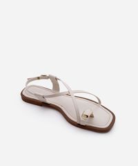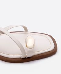 • Detalhe de aviamento metálico dourado na tira de dedo, adicionando um ponto de luz ao calçado.