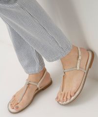 Esta sandália rasteira se destaca por seus detalhes refinados:
