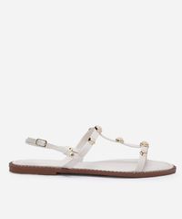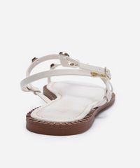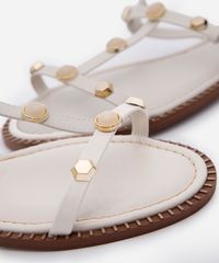 Esta sandália rasteira se destaca por seus detalhes charmosos: