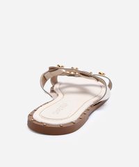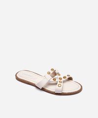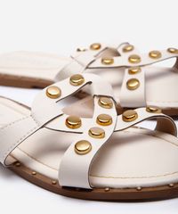 • Cabedal com tiras médias cruzadas e aplicação de tachas metálicas, que trazem um toque moderno ao calçado.