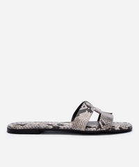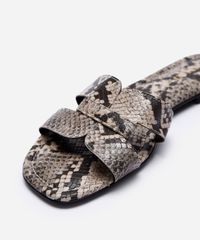 Esta sandália rasteira é extremamente versátil. Combine-a com vestidos fluidos ou saias midi para um visual feminino e elegante. Para um look mais despojado, use com shorts de alfaiataria ou calças jeans de modelagem reta. É o calçado ideal para transitar entre um passeio durante o dia e um encontro à noite, sempre com muito charme.