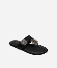 rasteirinha tira larga texturizada preta
