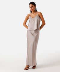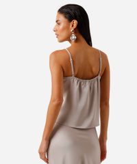 regata alça fina feminina com renda acetinada cinza