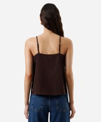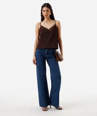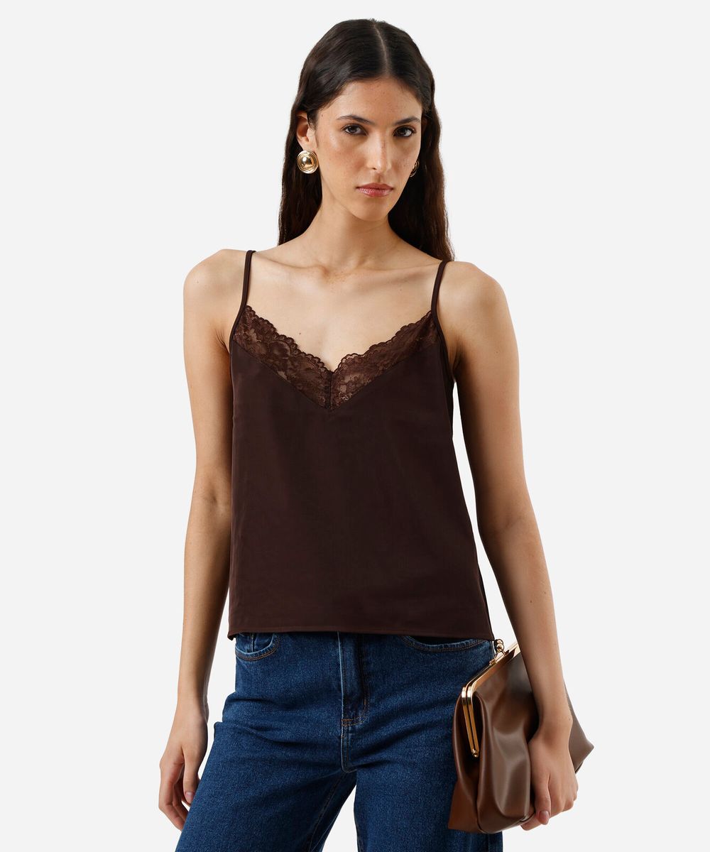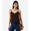 regata alça fina feminina com renda acetinada marrom