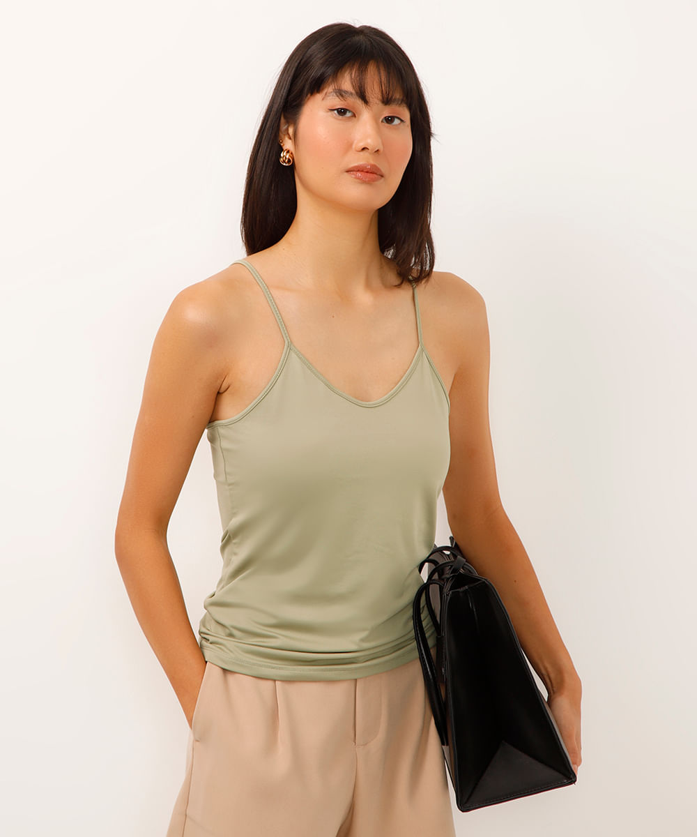 Regata feminina confeccionada em tecido com elasticidade e toque leve. A peça possui modelagem e caimento reto, decote redondo, alças médias cavadas e sem mangas, tecido duplo frontal e acabamento pespontado.