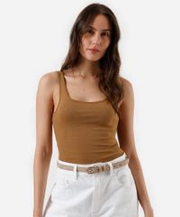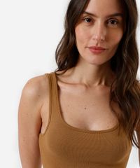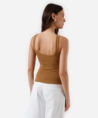 regata básica feminina de algodão decote quadrado marrom