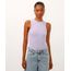 Blusa confeccionada em malha canelada. A peça modelo regata possui gola redonda, cavas regulares, caimento ajustado ao corpo e acabamento pespontado.