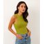 Blusa confeccionada em malha canelada. A peça modelo regata possui gola redonda, cavas regulares, caimento ajustado ao corpo e acabamento pespontado.