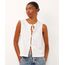 Regata confeccionada em tecido com toque leve. A peça possui modelagem reta com caimento solto, decote redondo, alças largas e sem mangas, detalhe frontal com amarração, tecido texturizado e acabamento pespontado.