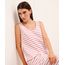 Regata feminina confeccionada em malha encorpada de algodão com padronagem listrada. A peça tem modelagem reta e caimento solto ao corpo. O modelo tem decote redondo e alças largas.