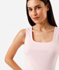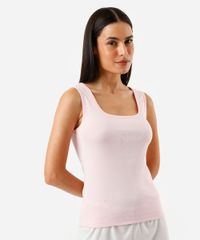 regata de pijama em algodão decote quadrado rosa