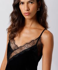 regata de pijama feminina alça fina com renda acetinada mindset preto