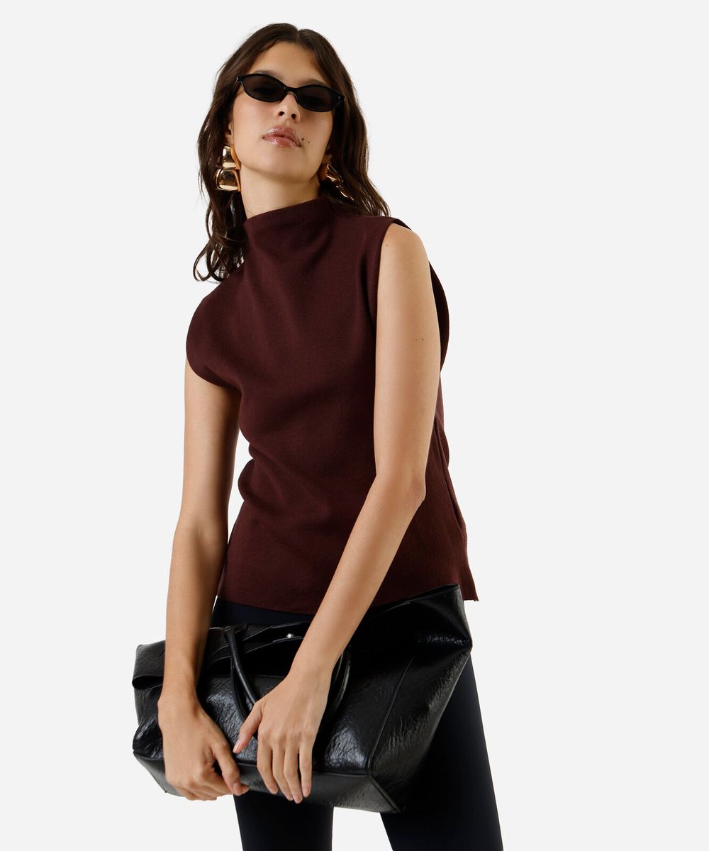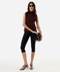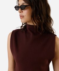 • Design sem mangas com cavas no lugar, conferindo um estilo moderno e elegante.