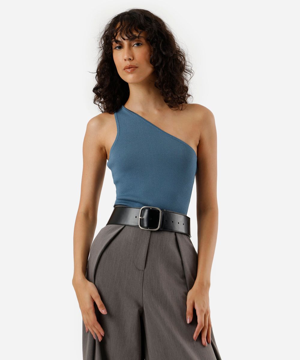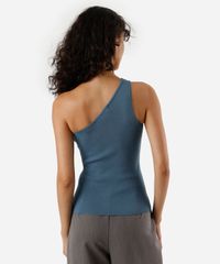 regata de tricot ombro único canelada azul