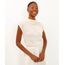 Regata confeccionada em tricot com textura e aplicação de pompons. Modelo com caimento reto, gola alta rolê, alças largas e cavas no lugar a barra tem acabamento canelado.