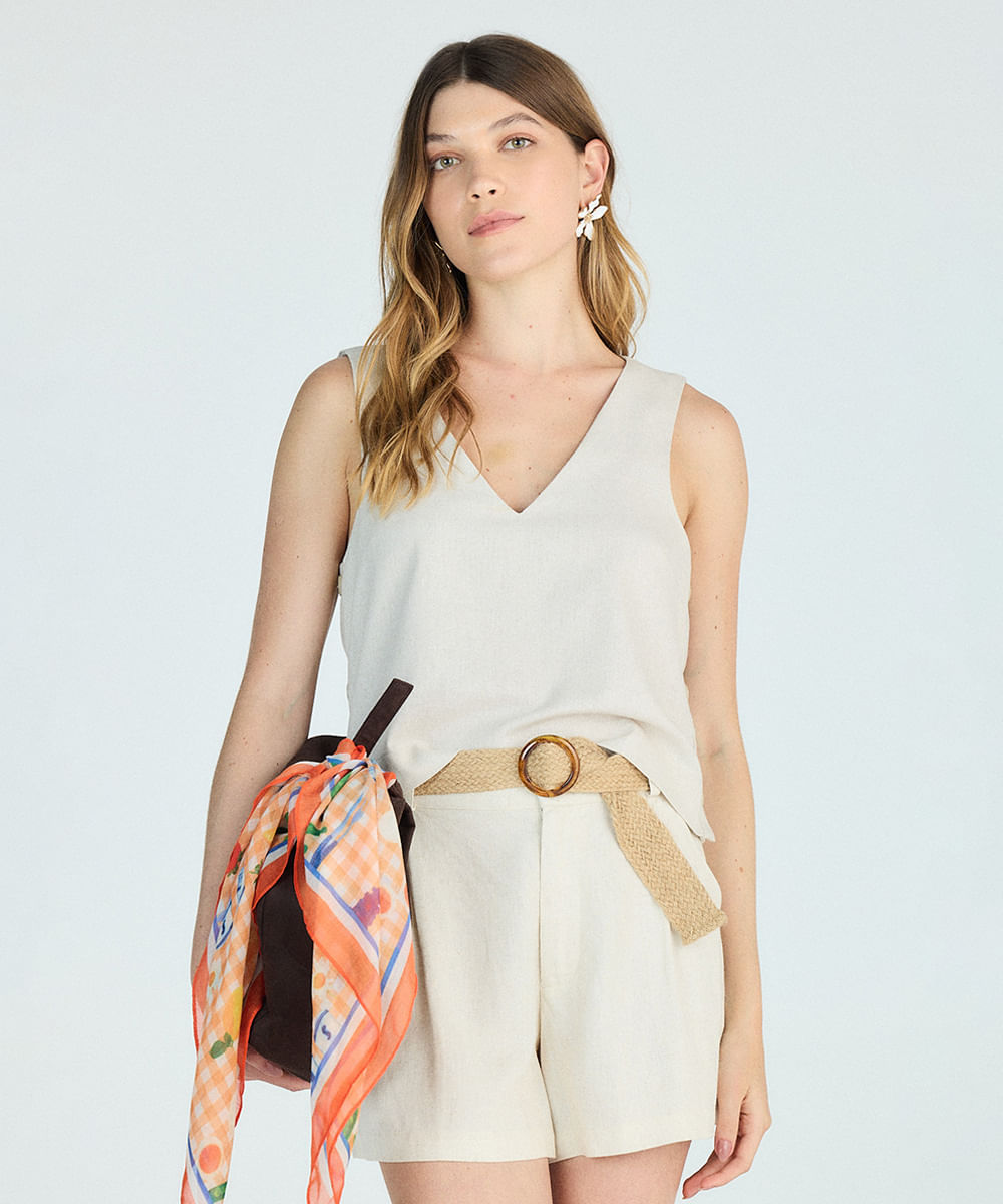 Este colete feminino é a peça ideal para adicionar um toque de elegância despojada ao seu guarda-roupa. Confeccionado em uma sofisticada mistura de viscose e linho, este top oferece um caimento leve e um toque macio, garantindo conforto ao longo do dia. Sua modelagem reta e soltinha proporciona liberdade de movimentos, tornando-o uma escolha versátil para diversas ocasiões.