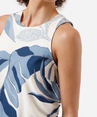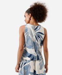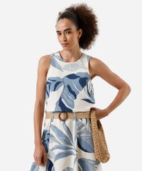 Renove seus looks com esta regata feminina que une elegância e frescor. Confeccionada em uma sofisticada mistura de viscose e linho, a peça oferece um toque macio e um caimento fluido, ideal para os dias mais quentes. Sua estampa de folhagem em tons de azul traz um ar natural e moderno, tornando-a um item versátil para diversas ocasiões.