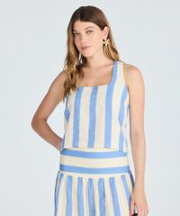 Regata feminina confeccionada em algodão com toque macio. A peça possui modelagem reta com caimento levemente solto, decote quadrado, alças médias, padronagem listrada e acabamento pespontado.