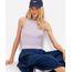 Regata feminina confeccionada em malha de algodão. A peça tem modelagem reta e caimento ajustado ao corpo. O modelo tem decote halterneck e alças médias. Detalhe de acabamento pespontado na barra.