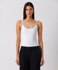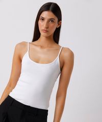 regata feminina de algodão peruano alça fina canelada mindset branca