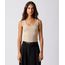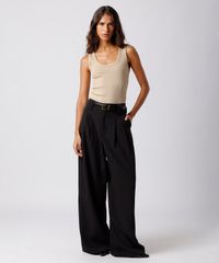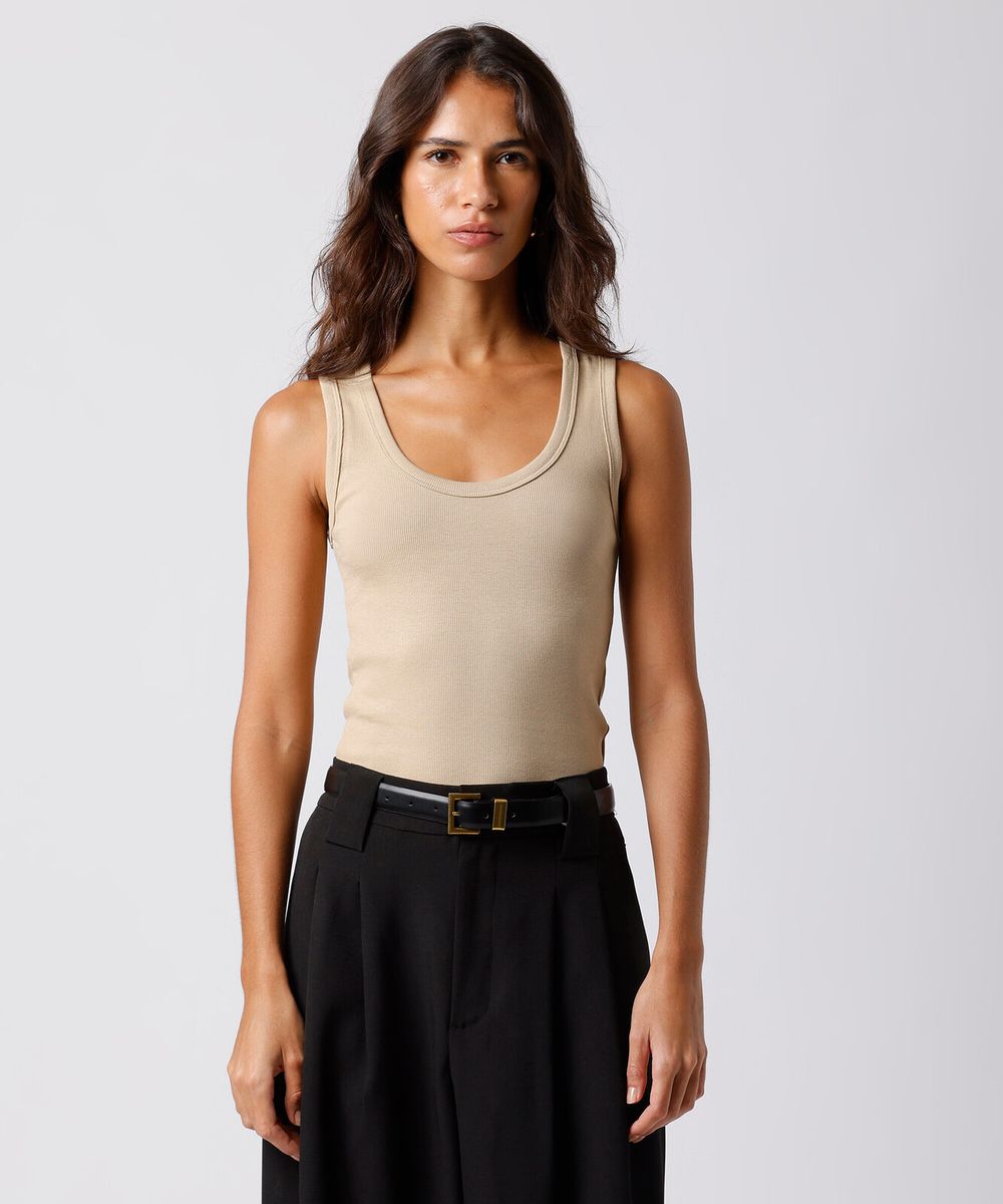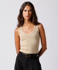 A versatilidade desta regata canelada permite criar inúmeras combinações. Para um visual casual e despojado, combine-a com uma calça jeans de modelagem ampla e tênis. Se a ocasião pede um toque de sofisticação, use-a com calças de alfaiataria e um blazer, como uma base neutra e elegante. Ela também funciona perfeitamente sob camisas abertas ou como peça principal com saias de diferentes comprimentos, adaptando-se facilmente do dia para a noite.