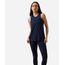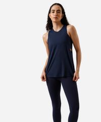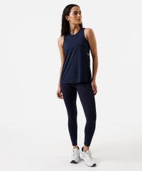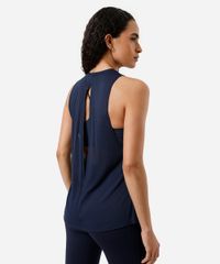 Regata feminina confeccionada em malha de poliamida. A peça tem modelagem reta e caimento solto ao corpo. O modelo tem decote redondo e alças largas. Detalhe de acabamento com recorte vazado na parte posterior.