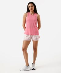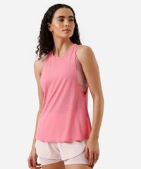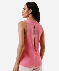 Regata feminina confeccionada em malha de poliamida. A peça tem modelagem reta e caimento solto ao corpo. O modelo tem decote redondo e alças largas. Detalhe de acabamento com recorte vazado na parte posterior.