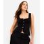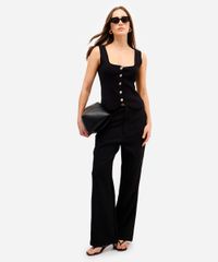 Para um visual de trabalho ou um evento sofisticado, combine este top preto com calças de alfaiataria de cintura alta e sandálias de salto. Para uma proposta mais despojada, use-o com jeans de modelagem reta e tênis. Em dias mais frios, adicione uma jaqueta feminina ou um blazer para um look completo e cheio de estilo.