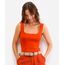Regata feminina confeccionada em tricot leve de viscose. A peça tem modelagem reta e caimento ajustado ao corpo. O modelo tem decote quadrado e alças largas.