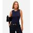 Regata feminina confeccionada em tricot leve de viscose e poliamida. A peça tem modelagem reta e caimento ajustado ao corpo. O modelo tem decote redondo e alças largas. Detalhe de acabamento contrastante no decote e cavas.