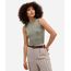 Regata feminina confeccionada em tricot leve de viscose e poliamida. A peça tem modelagem reta e caimento levemente ajustado ao corpo. O modelo tem decote redondo e alças largas. Detalhe de acabamento canelado na barra, cavas e decote.